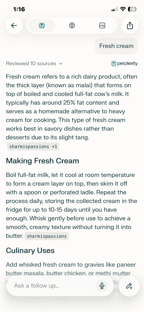 What Perplexity heard: “Fresh cream.”